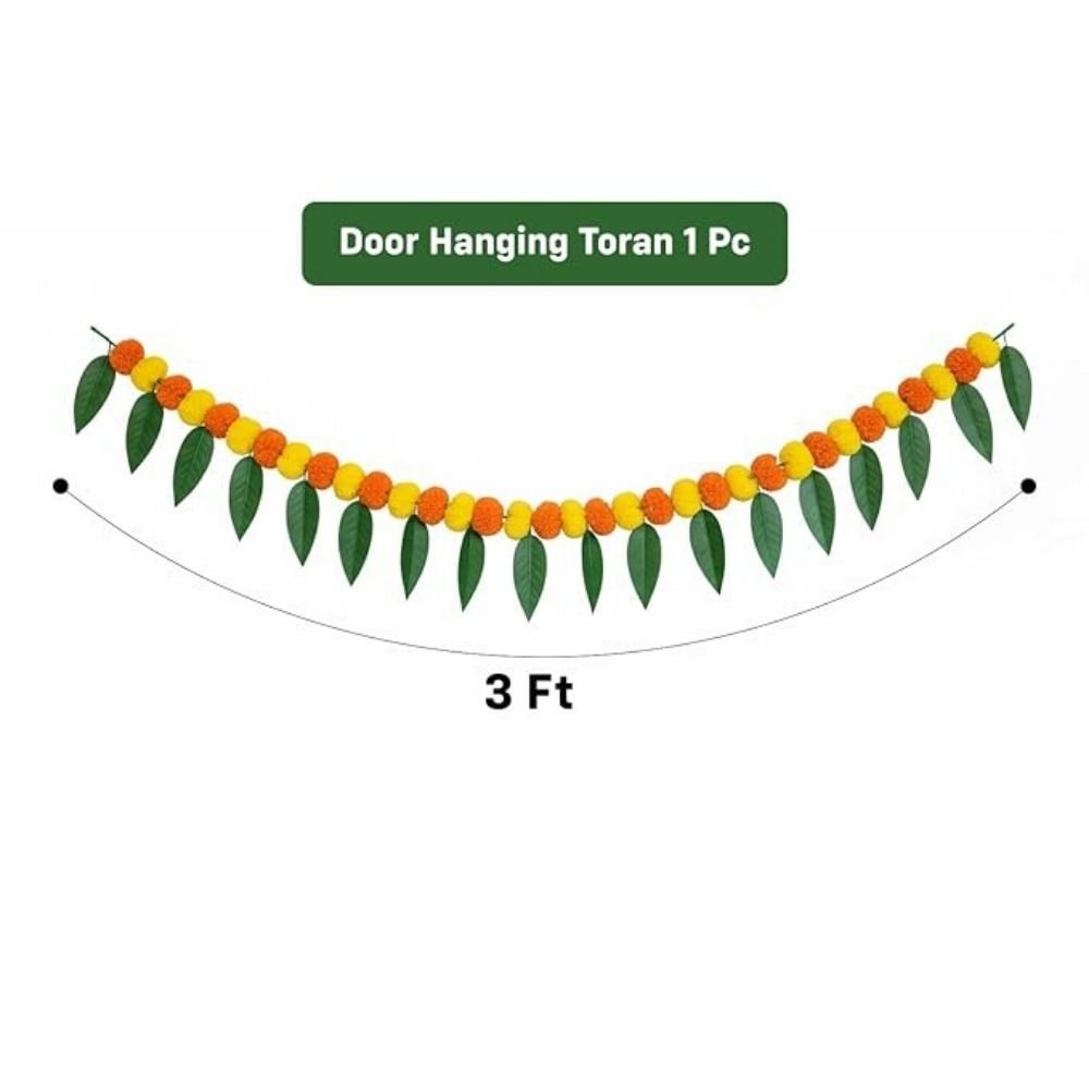 - Artificial mango leaves and marigold toran designed for main door, pooja room and home entrance decoration.