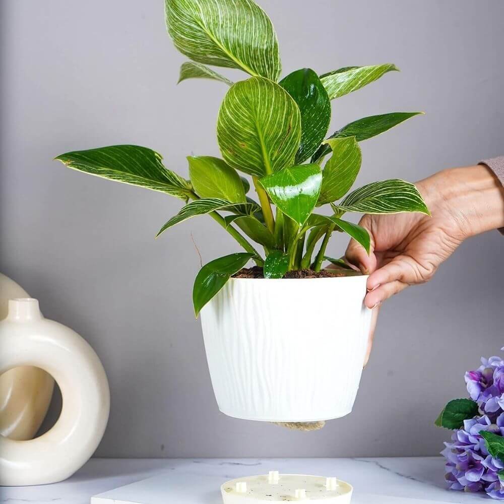 Nurturing Green Set of 3 Self Watering Pots for Home | Decor & Garden | Flower Pots | Planters for Indoor Plants | Plastic Pots for Living Room (Color: Ivory | Size: 14cm x 12.5cm Each)