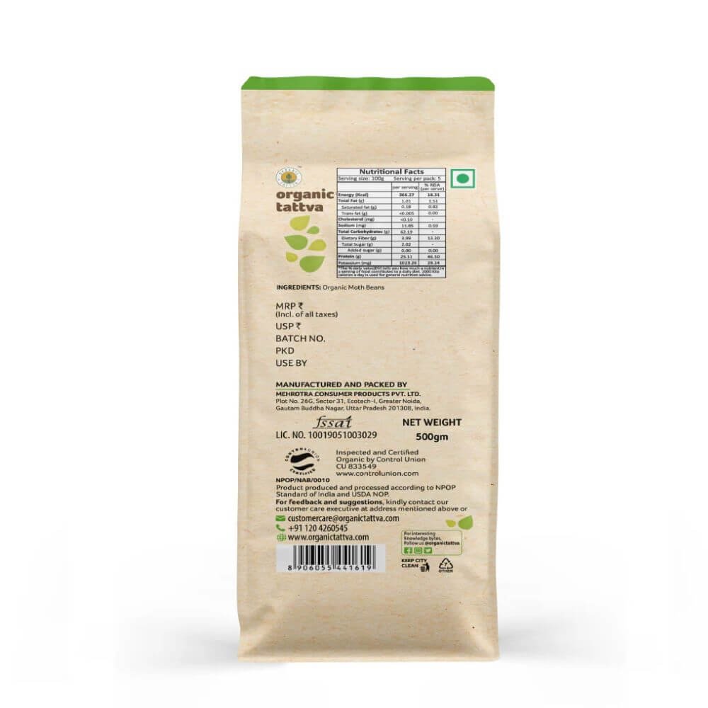 - Single-ingredient: 100% whole moth beans