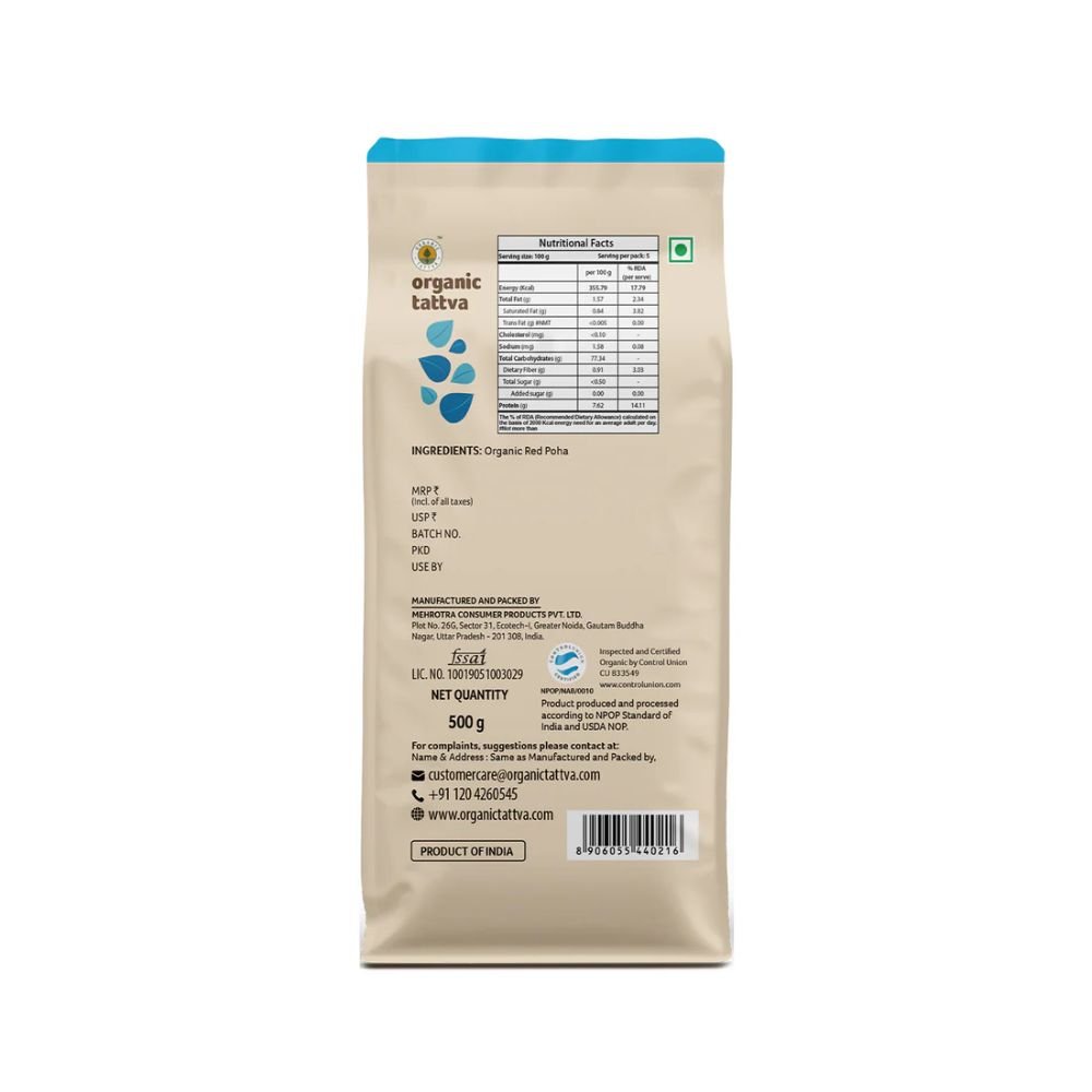 Organic red poha 500 gm is suitable for regular use at home. It is a quick meal option for both adults and children.