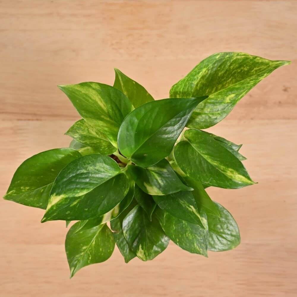 This Money Plant variety features white variegation on green leaves. It is low on maintenance and looks good when planted as a ground cover under shade. It also goes well with indoor pots on moss sticks or hanging baskets.